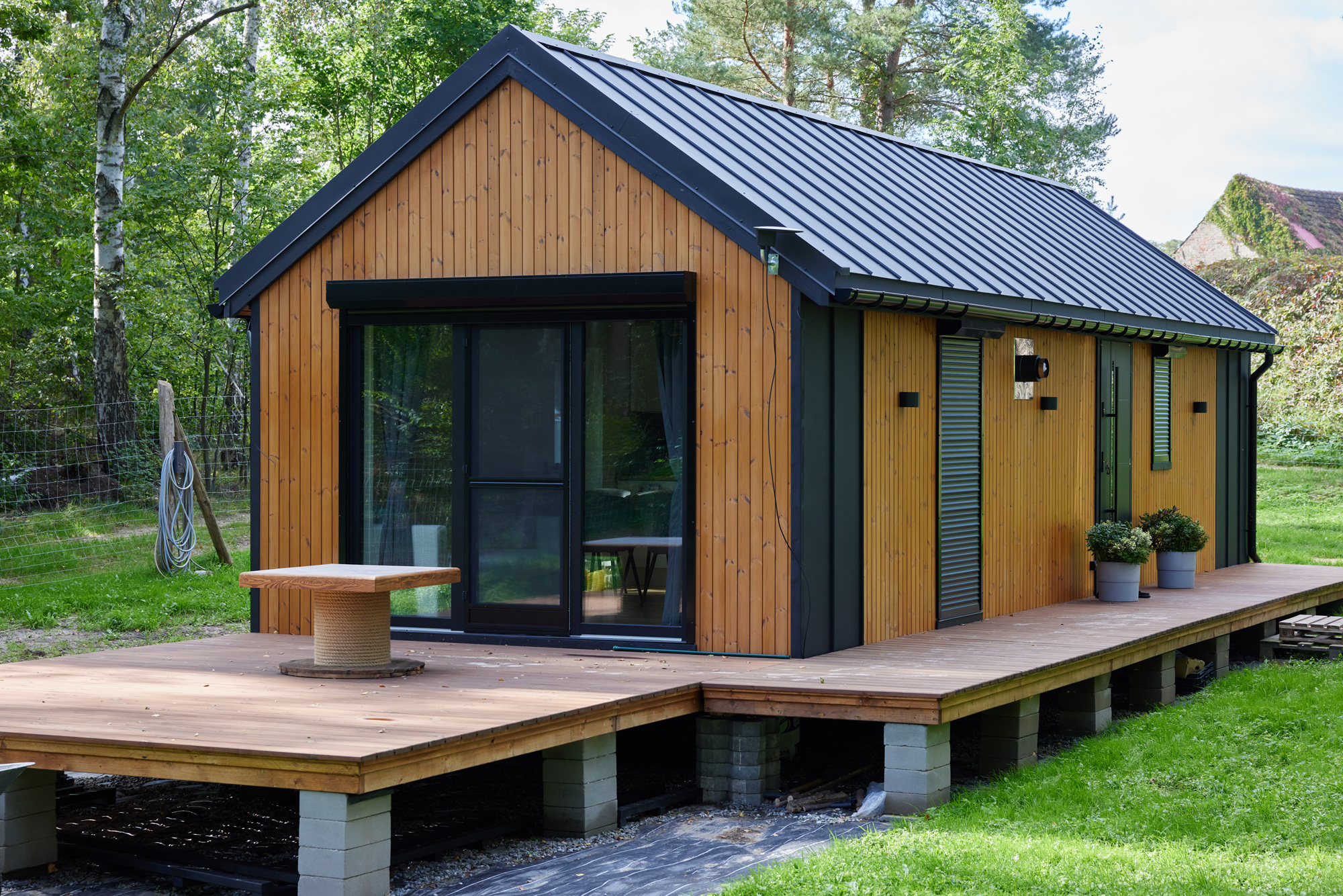 Dom Typ E to idealne połączenie stylu nowoczesnej stodoły i funkcjonalności jednomodułowego rozwiązania. Z powierzchnią zabudowy wynoszącą 50 m² oferuje mnóstwo przestrzeni, abyś mógł dostosować ją do swoich potrzeb.